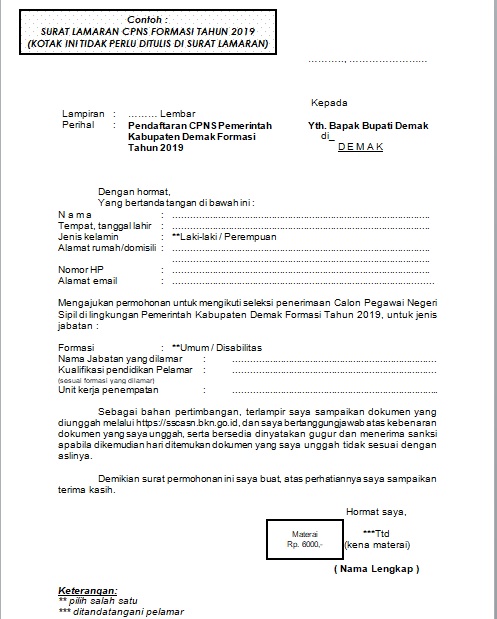 Contoh surat lamaran cpns 2018 pdf download suratmenyuratnet. Surat Lamaran yang telah ditandatangani oleh pelamar diatas materai Rp 6000- yang ditujukan kepada Wali Kata Tegal cq Panitia Seleksi Anggota Bantuan Satpol pp Kola Tegal Tahun 2020 Catatan. Lowongan Satpol PP yang tersedia biasanya memiliki beberapa persyaratan umum yang harus dipenuhi oleh pelamar agar lamarannya dapat diproses.